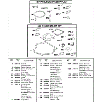 Parts for Briggs & Stratton 235437-0280-E1: Gasket Set-Engine, Kit-Carburetor Overhaul Parts