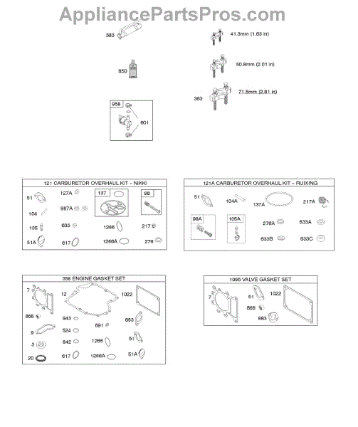 Parts for Briggs & Stratton 331777-1557-G1: Gasket Set-Engine, Gasket Set-Valve, Kit-Carburetor Overhaul Parts