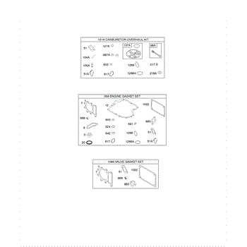 Parts for Briggs & Stratton 331877-0238-G6: Gasket Set - Engine, Gasket Set -Valve, Kit - Carburetor Overhaul Parts