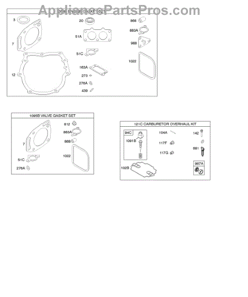 Parts for Briggs & Stratton 380777-0143-E1: Gasket Set - Engine, Gasket Set - Valve, Kit - Carburetor Overhaul Parts