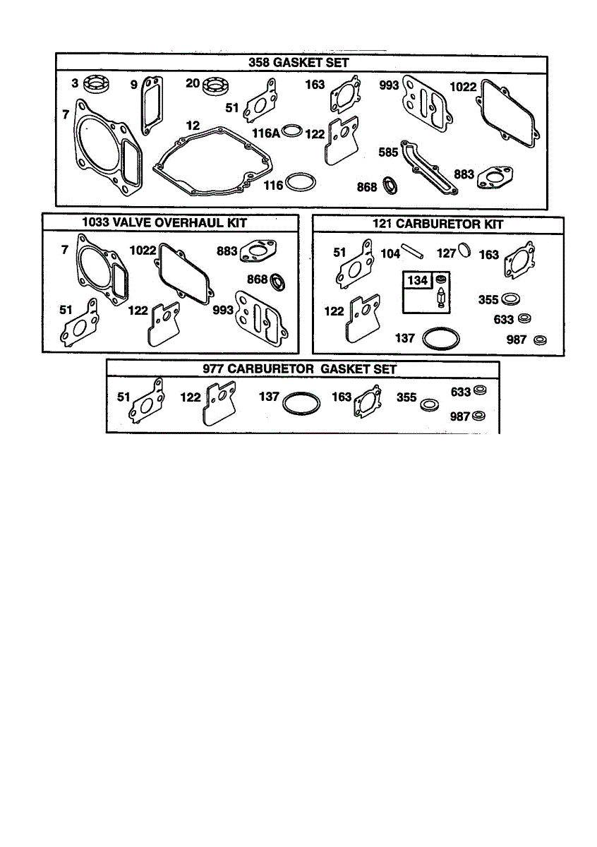 Parts for Briggs & Stratton 121602-0190: Gasket Set Parts