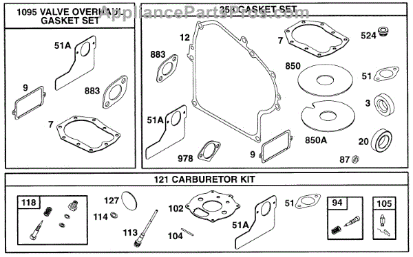 Parts for Briggs & Stratton 252412-0633-01: Gasket Set Parts