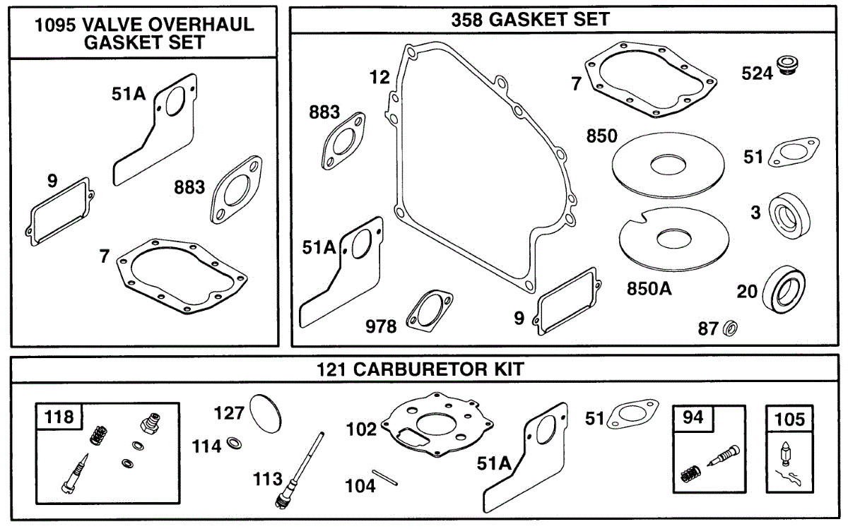 Parts for Briggs & Stratton 252412-0636-01: Gasket Set Parts