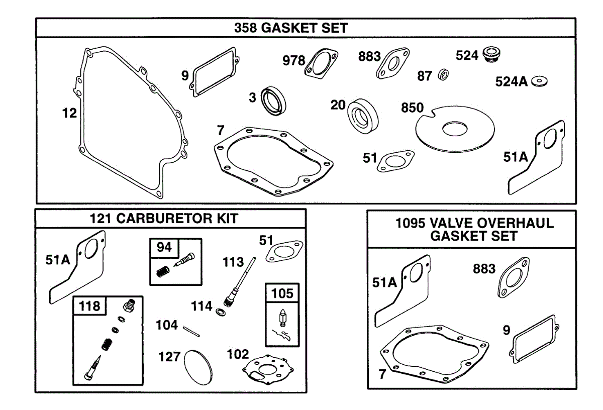 Parts for Briggs & Stratton 254422-1512-01: Gasket Set Parts