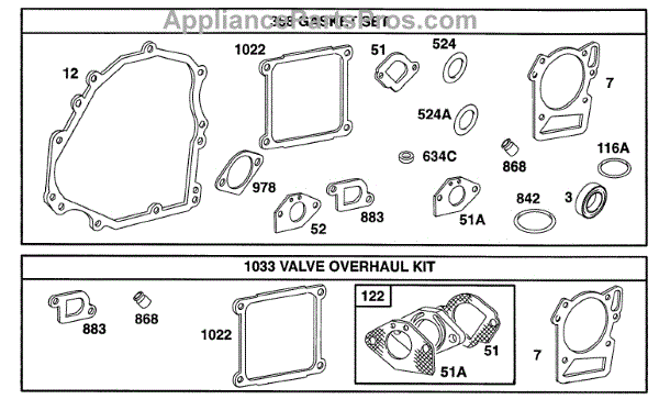Parts for Briggs & Stratton 161457-0050-01: Gasket Sets Parts