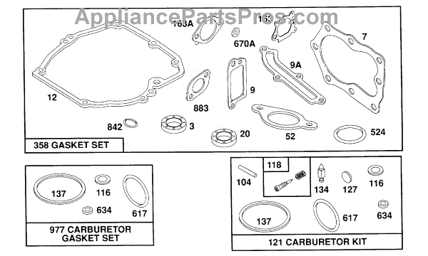 Parts for Briggs & Stratton 122702-0121-01: Gasket Sets Parts