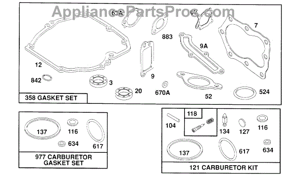 Parts for Briggs & Stratton 123807-3417-01: Gasket Sets Parts