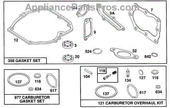 Parts for Briggs & Stratton 125702-0115-02: Gasket Sets Parts