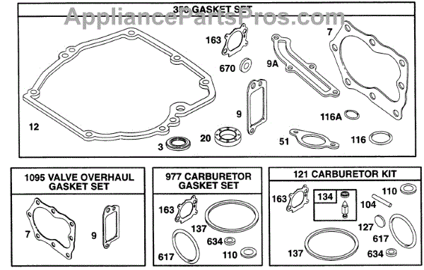 Parts for Briggs & Stratton 12B802-0808-01: Gasket Sets Parts