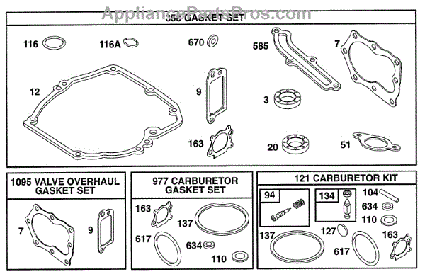 Parts for Briggs & Stratton 12S802-0872-01: Gasket Sets Parts
