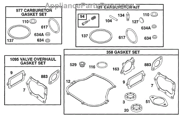 Parts for Briggs & Stratton 133702-0027-01: Gasket Sets Parts