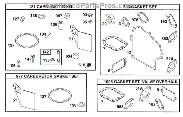 Parts for Briggs & Stratton 19B412-0128-01: Gasket Sets Parts