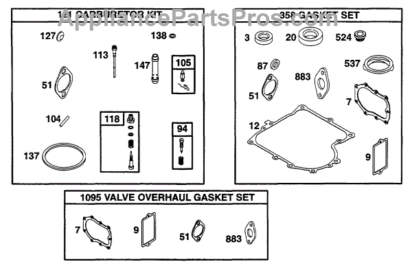 Parts for Briggs & Stratton 256702-0100-01: Gasket Sets Parts