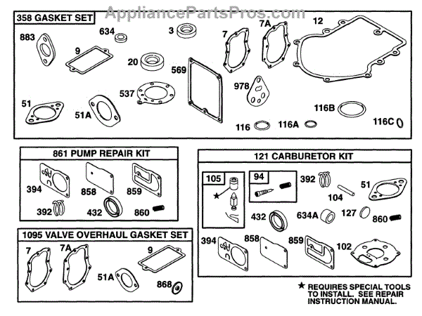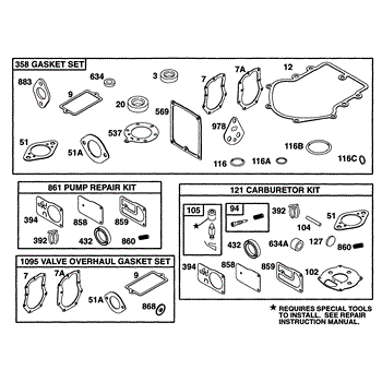 This fuel pump kit is made for use with lawn and garden equipment with small engines. The kit comes with all the diaphragms, gaskets, and additional parts needed to completely rebuild a fuel pump. It may be required if the lawn tool has fuel pump issues such as sluggish performance, leaks, and other problems. It can be used to fix the most common issues related to worn out diaphragms and gaskets.The fuel pump in lawn and garden equipment is a component that helps bring fuel from the tank to the engine when the carburetor is mounted at a lower position than the carburetor. With these kit parts, many issues with the fuel pump can be alleviated. Replacement requires a nut drive, a wrench set, and a socket set. The fuel pump will need to be disassembled to replace the parts that are not working correctly.This fuel pump kit is a genuine OEM replacement part sourced directly from the manufacturer. It's sold as an individual kit. The kit is designed to be used in lawnmowers and snowblowers manufactured by MasterCut, Briggs & Stratton, Craftsman, Simplicity, Toro, and Cub Cadet.
