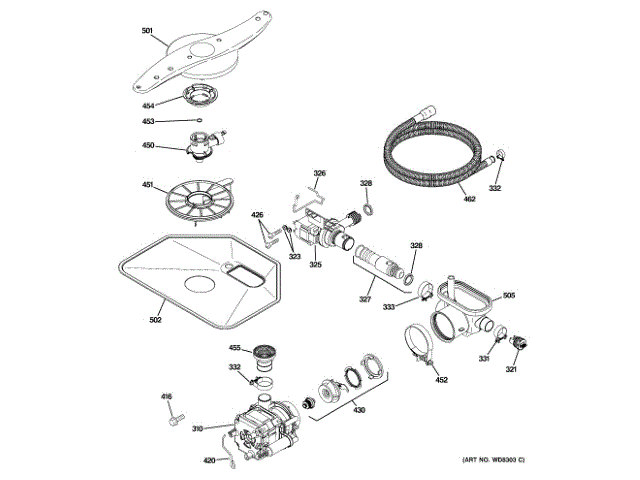 Wally Z Goodyear , AZ January 11, 2017 Appliance: Model GE DISHWASHER PWDT100V00BB Leaking dishwasher door Found hole in bottom tub rotating washer. Went to u tube, typed model in and found fix. Appliance parts had video on how to install and part in stock. Easy. Read More... Do-It-Yourself Rating: Repair Time Estimate: Less than 15 minutes