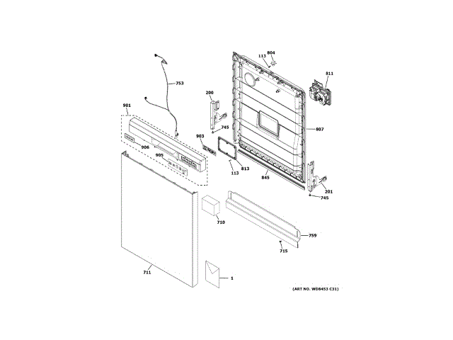 Ge WD34X29460 Black Control Panel Assembly OEM Part