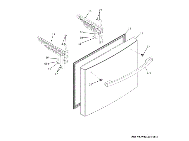 Ge WR12X34313 Freezer Door Handle (Black Stainless) OEM Part