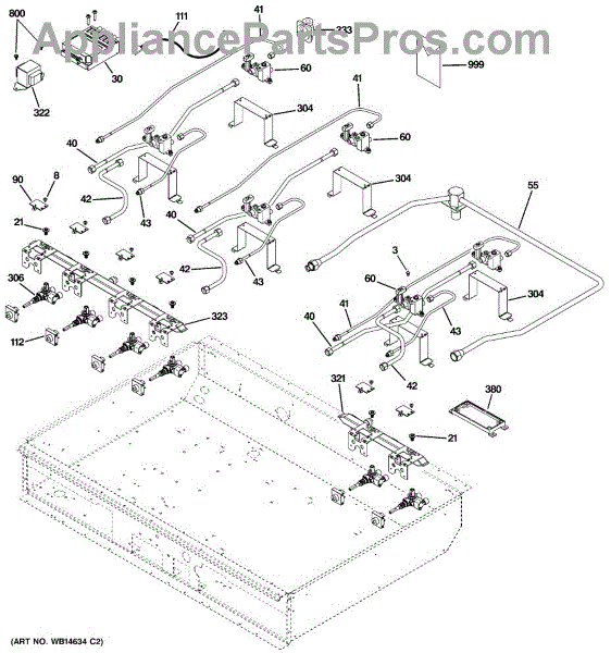This pipe manifold assembly routes gas from the range's main valve to the individual burners, restoring proper fuel flow for reliable heating. Designed to replace a worn or damaged manifold to help get burners operating correctly. What it does: