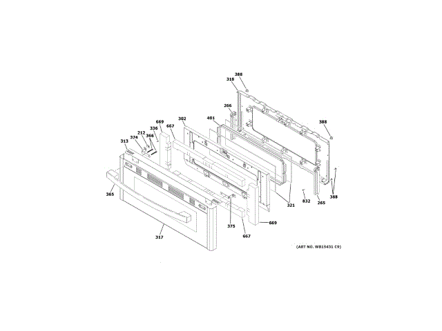 Ge WB56X40186 Glass Door Asm OEM Part
