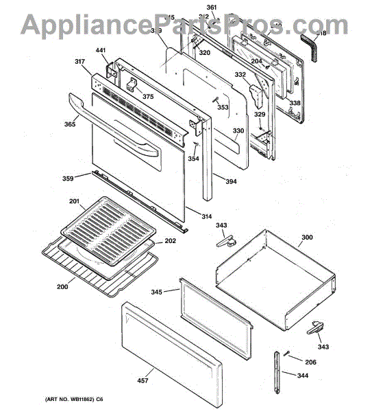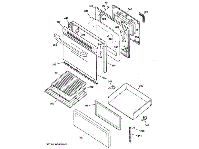 Ge WB57K10062 Glass Door (Bsqt), 1 OEM Part