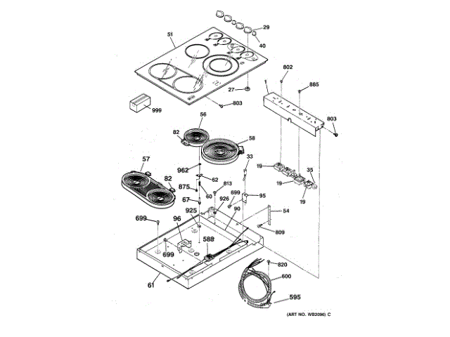 Ge WB61T10009 Glass Maintop Assembly (Blk) OEM Part