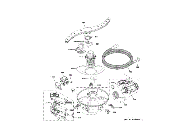 Ge WD22X25978 Lower Spray Arm Asm OEM Part