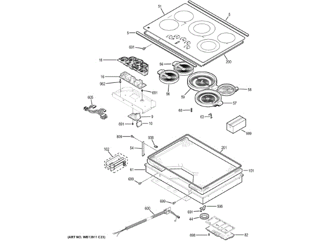 Ge WB62X24152 Maintop Glass & Frame A OEM Part