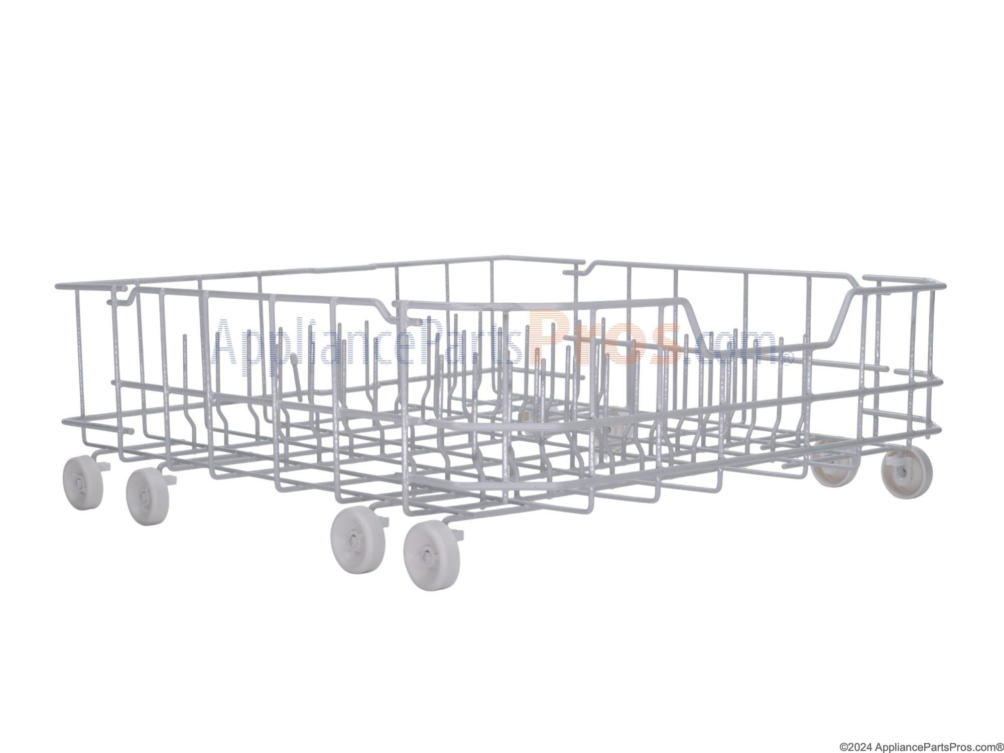 The Lower Dishrack Assembly is an OEM part for GE dishwashers. It provides the lower-level storage and washing functionality needed to clean dishes of various sizes. Wire tines securely hold plates, bowls, pots, and pans in place during heated spray cycles. The dishrack includes 8 rollers and measures approximately 22 1/2 front to back. 20" Width not including the rollers and 5" Height
