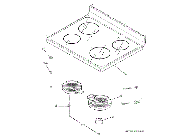 Ge WB62T10603 Rantop Glass Assembly OEM Part