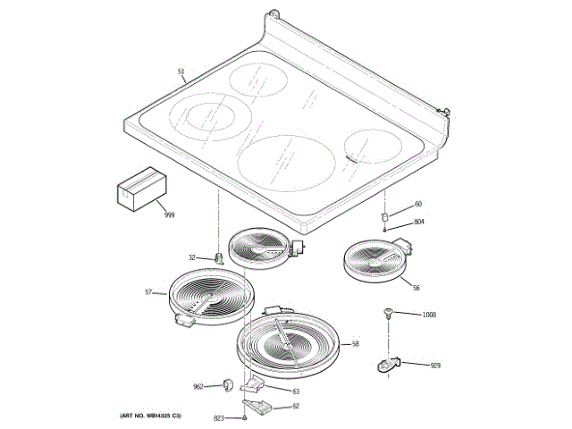 Ge WB62T10610 Rantop Glass Assembly OEM Part