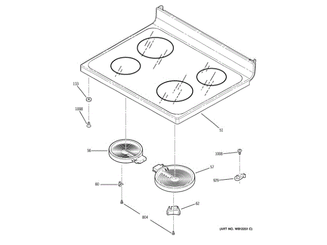 Ge WB62T10616 Rantop Glass Assembly OEM Part