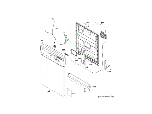 Ge WD34X29862 Slate Control Panel Overlay OEM Part