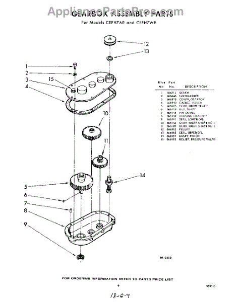 Parts for Whirlpool CEFH7AE: 09 - Gear Box Parts