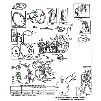 Parts for Briggs & Stratton 080232-1766-01: Gear Case,Blower Hsg.,Rewind Parts