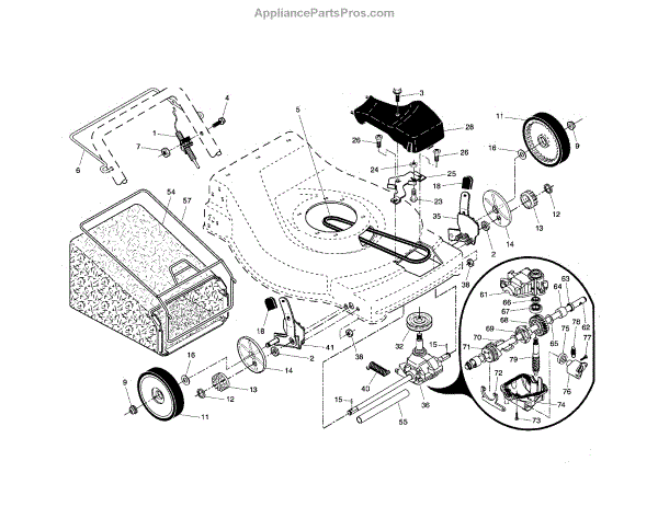 Parts for Craftsman 917376160: Gear Case / Drive Control / Grassbag Parts