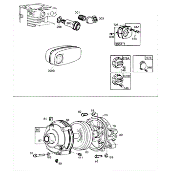 Parts for Briggs & Stratton 170402-1122-99: Gear Case, Mufflers,Deflectors Parts
