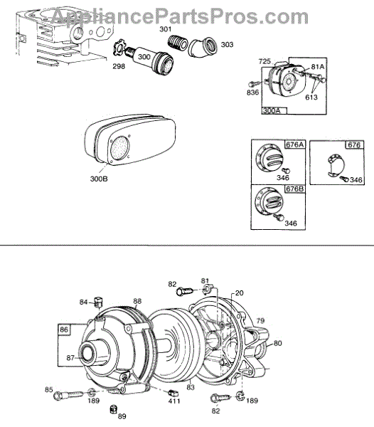 Parts for Briggs & Stratton 170412-1791-99: Gear Case, Mufflers,Deflectors Parts