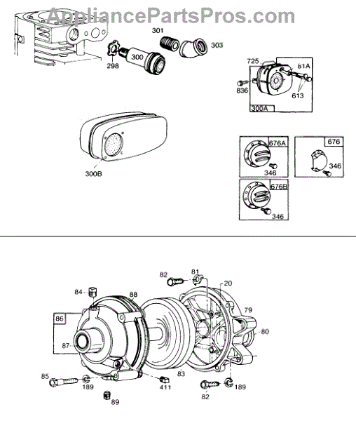 Parts for Briggs & Stratton 170432-1169-99: Gear Case, Mufflers,Deflectors Parts