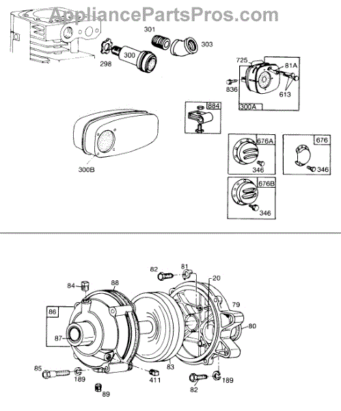 Parts for Briggs & Stratton 190402-1743-99: Gear Case, Mufflers & Parts