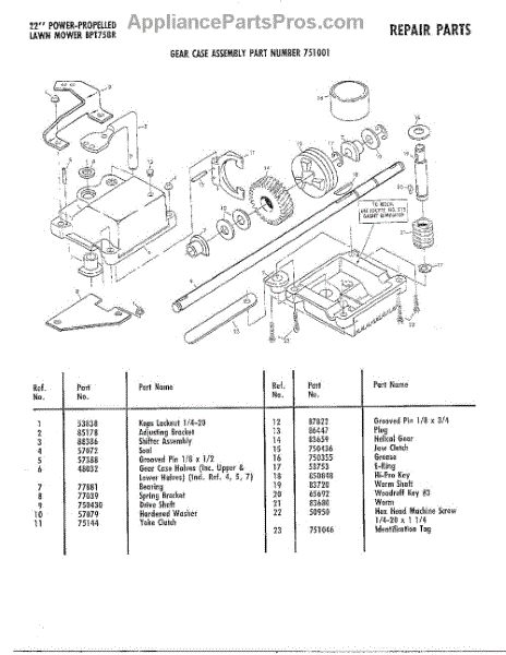 Parts for Ayp Frigidaire Home Products 37250: Gear Case Parts