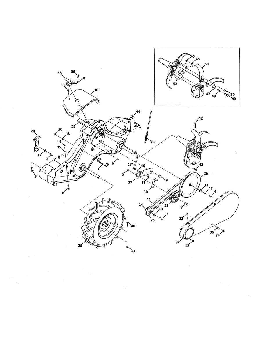 Replacement wheel assembly for tillers. Allows forward and backward movement while breaking soil. Replace if wheels lose seal or become damaged.