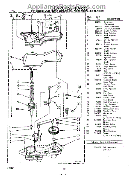 Parts for Whirlpool 3LHA5700W2: 10 - Gear Case Parts