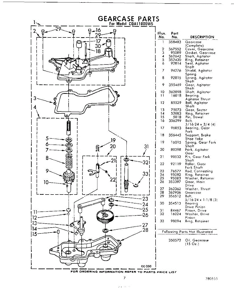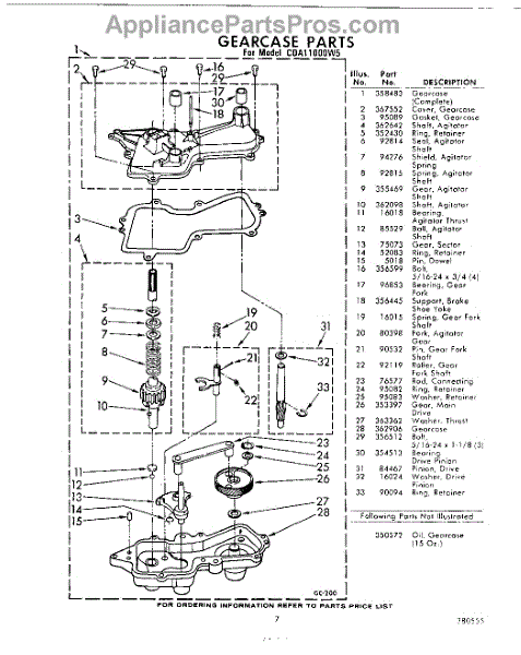 Parts for Whirlpool CDA1100W5: 07 - Gear Case Parts
