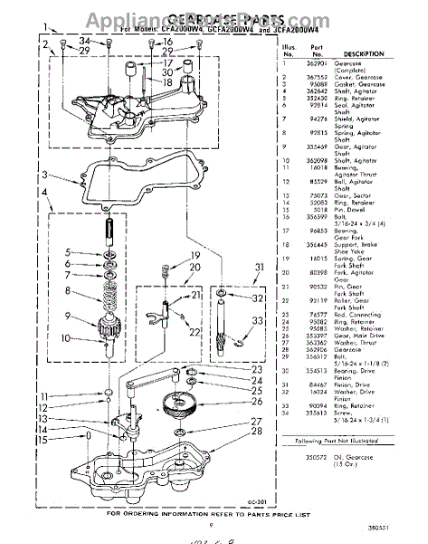 Parts for Whirlpool GCFA2000W4: 09 - Gear Case Parts