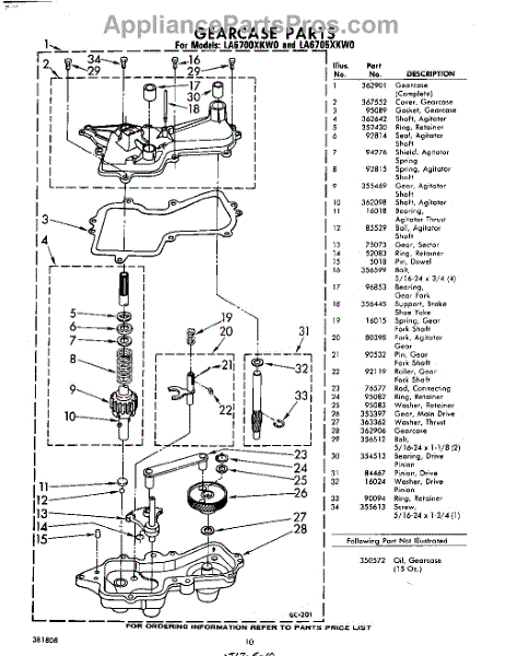 Parts for Whirlpool LA6705XKW0: 10 - Gear Case Parts