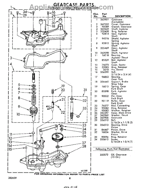 Parts for Whirlpool LA7685XKW0: 08 - Gear Case Parts