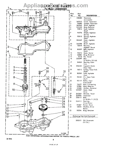 Parts for Whirlpool LA9800XKW0: 08 - Gear Case Parts