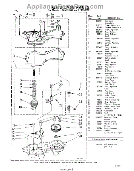 Parts for Whirlpool LFA5530W1: 09 - Gear Case Parts