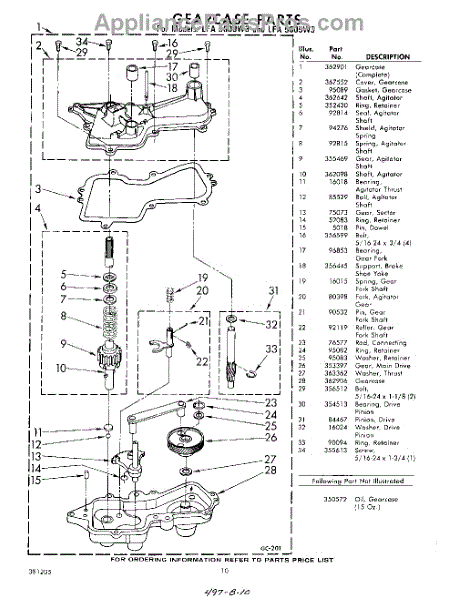 Parts for Whirlpool LFA5600W3: 10 - Gear Case Parts