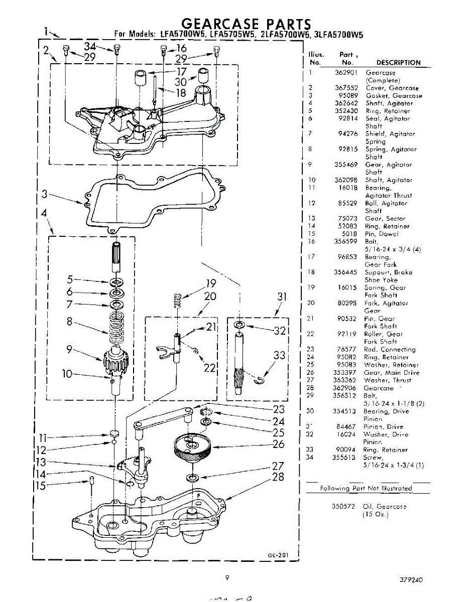 Parts for Whirlpool LFA5705W5: 09 - Gear Case Parts